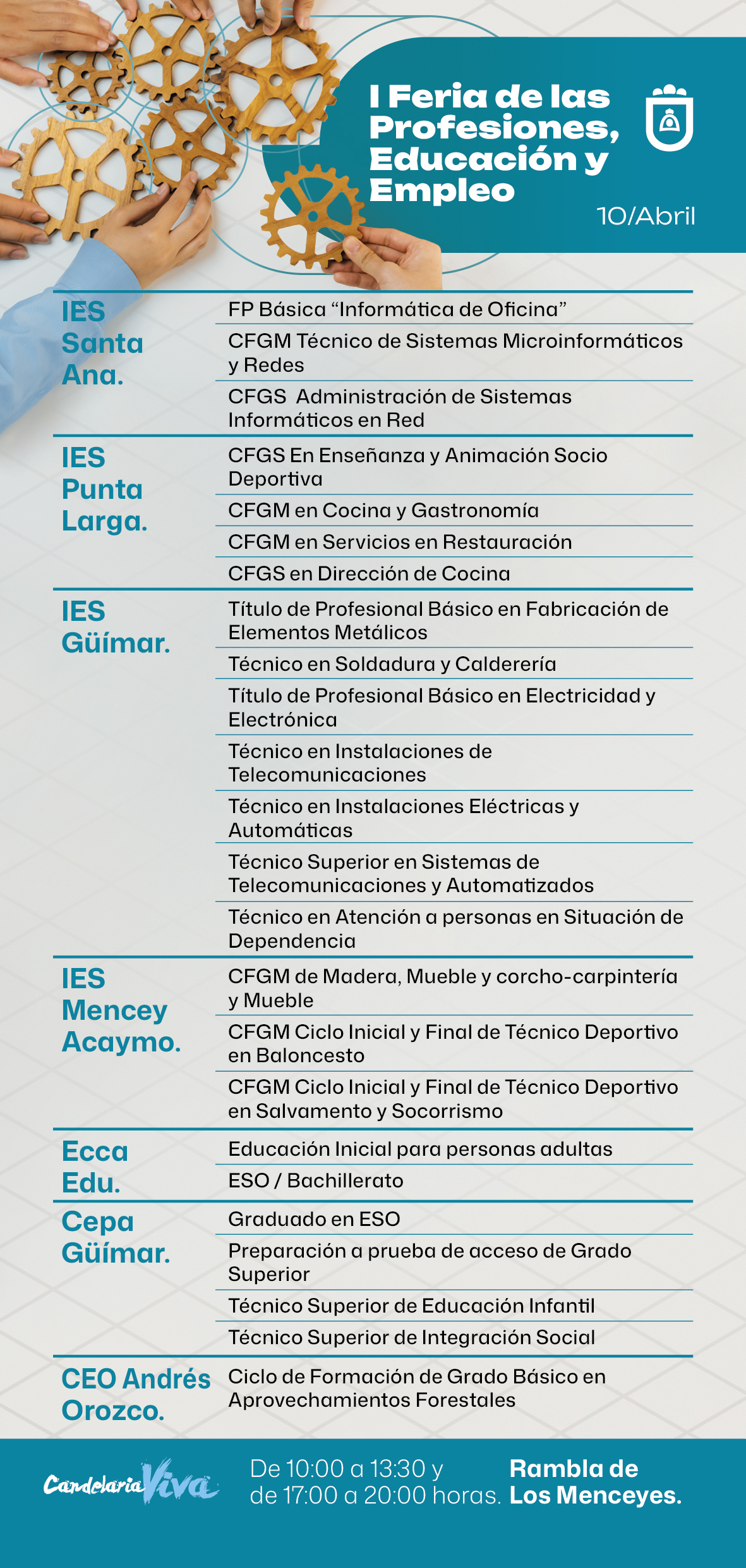 El Ayuntamiento de Candelaria invita a toda la población a participar en esta primera edición de la feria, que pretende consolidarse como un punto de referencia en materia de educación y empleo en el municipio.