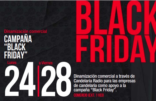 Candelaria Radio para las empresas de candelaria como apoyo a la 24 campaña “Black Friday”.