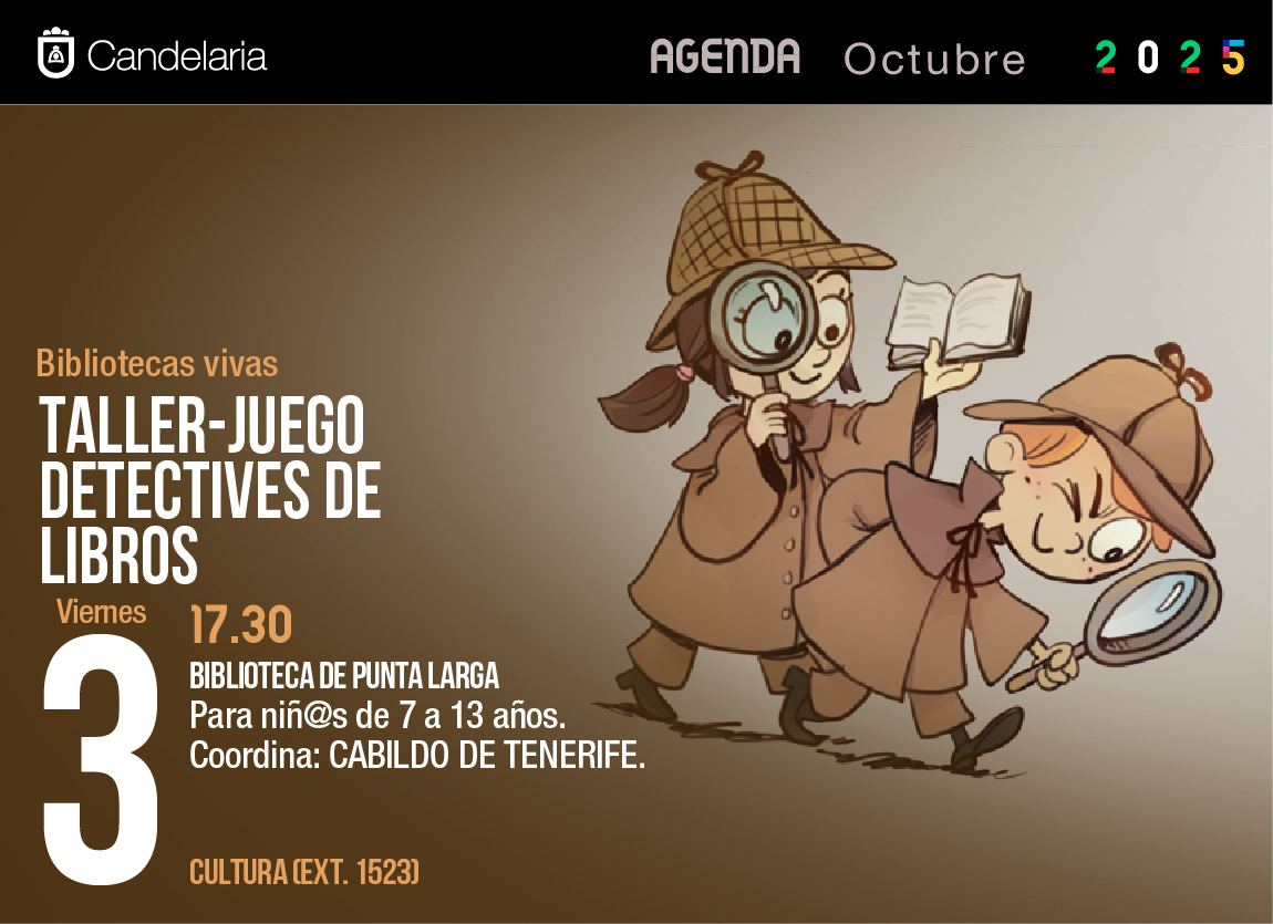 Taller- juego detective de libros 17.30 BIBLIOTECA DE PUNTA LARGA Para niñ@s de 7 a 13 años. Coordina: CABILDO DE TENERIFE