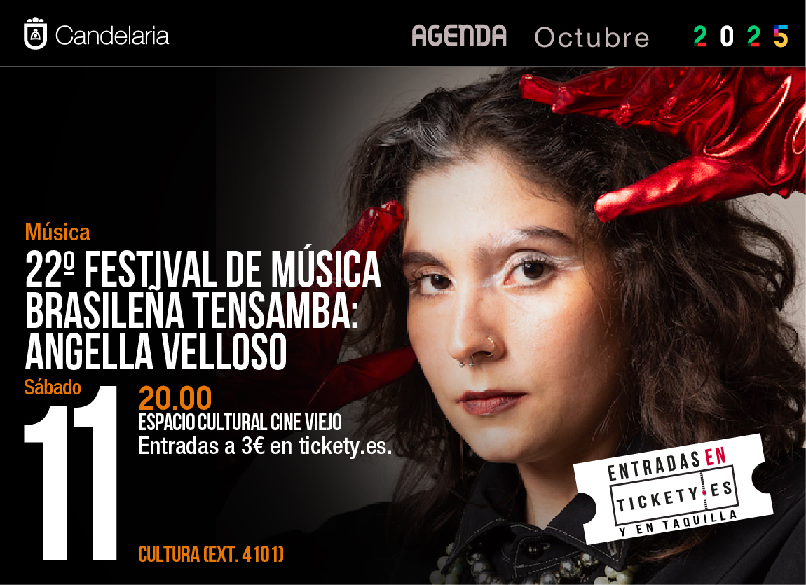 22º º FESTIVAL DE MÚSICA BRASILEÑA TENSAMBA: ANGELLA VELLOSO 20.00 ESPACIO CULTURAL CINE VIEJO Entradas a 3€ en tickety.es