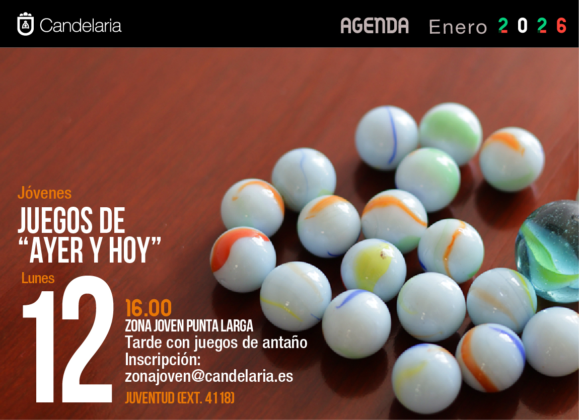 JUEGOS DE “AYER Y HOY” Jóvenes 16.00 ZONA JOVEN PUNTA LARGA Tarde con juegos de antaño Inscripción: zonajoven@candelaria.es