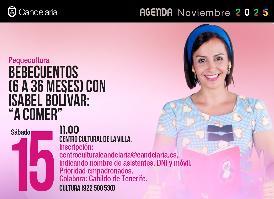 ✅ Bebecuentos (6–36 meses) con Isabel Bolívar: “A comer” 🕒 11:00📍 Centro Cultural de La VillaInscripción: centroculturalcandelaria@candelaria.es (nombre + asistentes + DNI + móvil)Colabora: Cabildo de Tenerife📞 Cultura Ext. 522 500 530