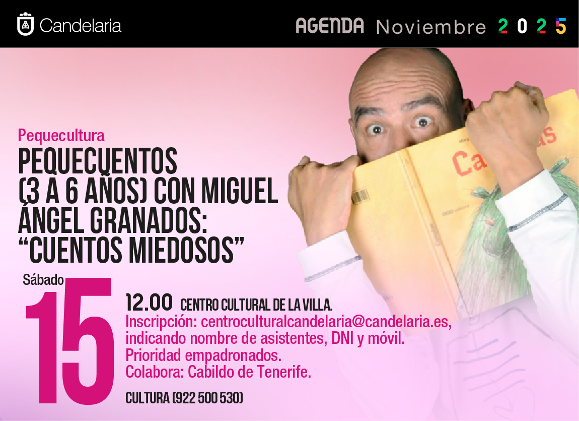 ✅ Pequecuentos (3–6 años) con Miguel Ángel Granados: “Cuentos miedosos” 🕒 12:00📍 Centro Cultural de La VillaInscripción: centroculturalcandelaria@candelaria.esPrioridad empadronados📞 Cultura Ext. 522 500 530