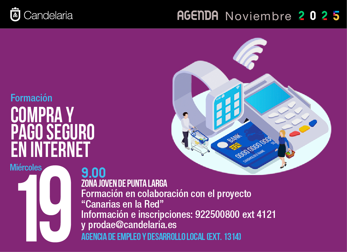 📌 Miércoles 19 ✅ Formación: Compra y pago seguro en internet 🕒 9:00📍 Zona Joven de Punta LargaFormación en colaboración con proyecto “Canarias en la Red”.Info e inscripciones: 922 500 800 Ext. 4121 · prodae@candelaria.es📞 Agencia de Empleo y Desarrollo Leer más...