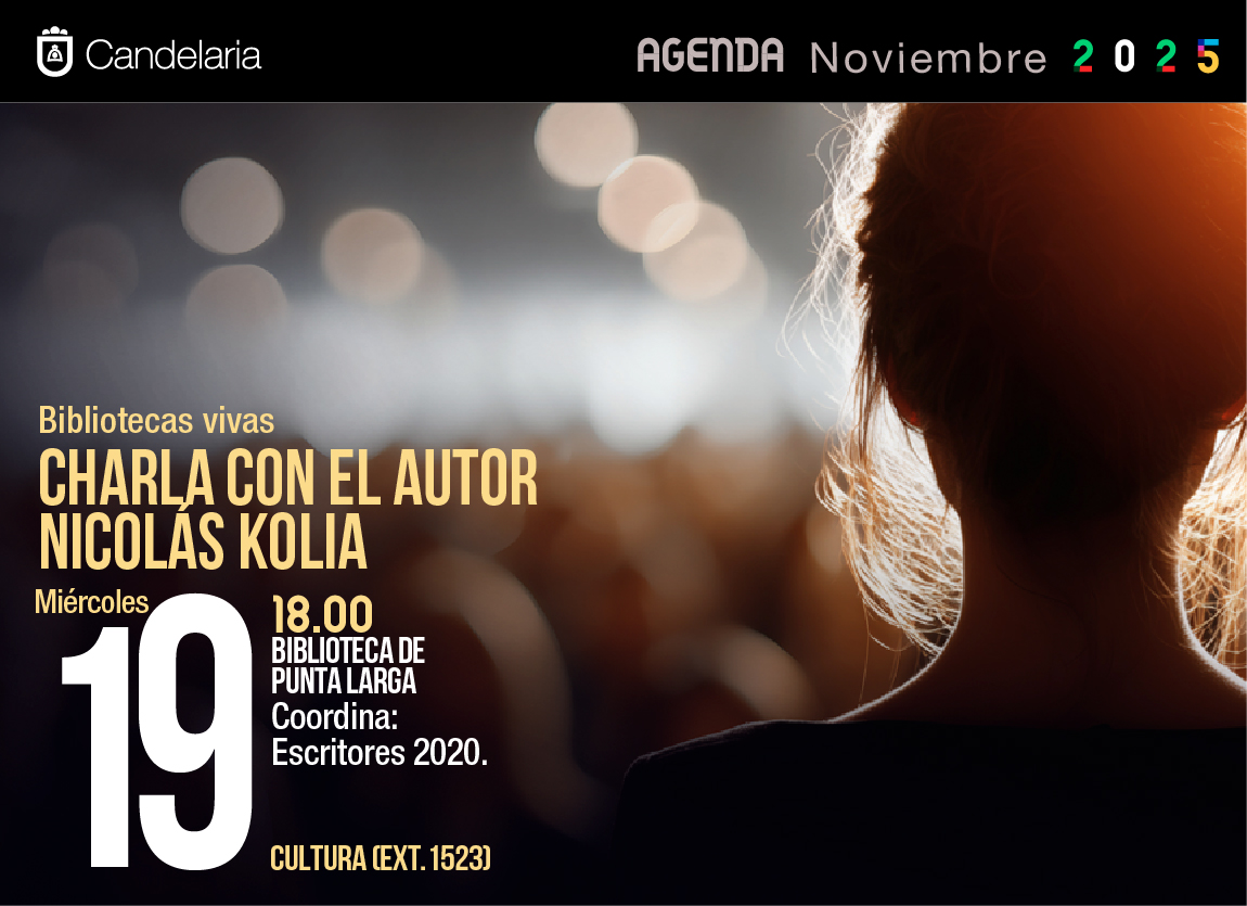 📌 Miércoles 19 ✅ Charla con el autor Nicolás Kolia 🕒 18:00📍 Biblioteca de Punta LargaCiclo: Escritores 2020📞 Cultura Ext. 1523