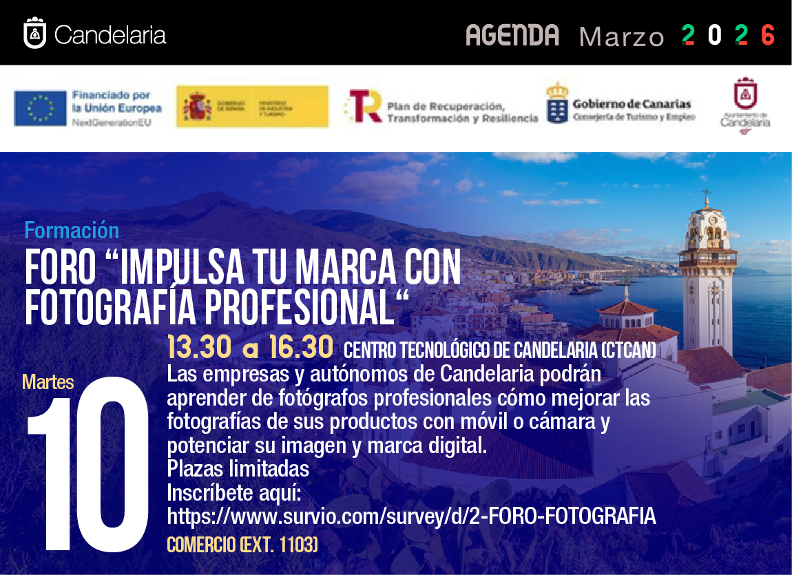 “Impulsa tu marca con fotografía profesional”, foro para reforzar la imagen digital del comercio local El Ayuntamiento de Candelaria, a través de la iniciativa Candelaria VivaPyme Emprende, celebrará el próximo 10 de marzo de 2026 el foro “Impulsa tu marca Leer más…