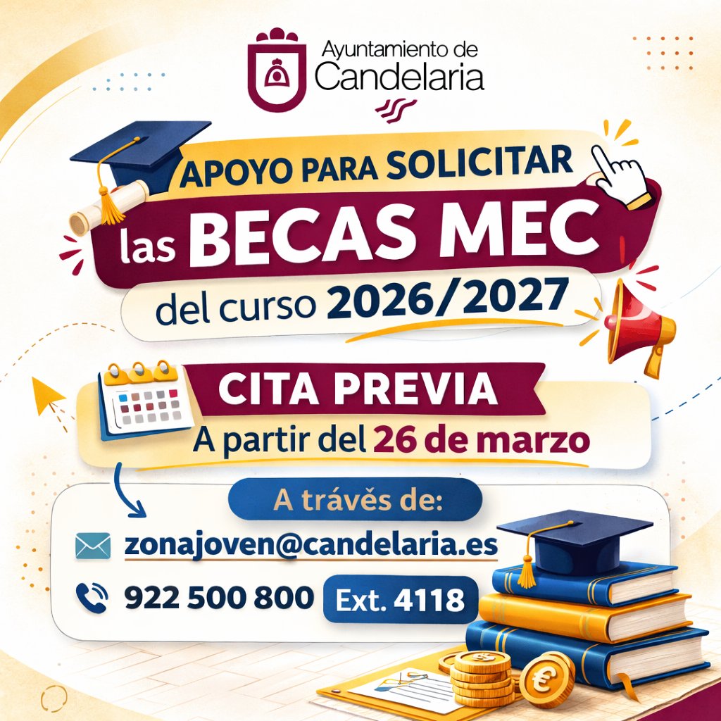 El Ayuntamiento de Candelaria ofrece apoyo para solicitar las becas MEC del curso 2026/2027 El Ayuntamiento de Candelaria, a través del área de Educación y Juventud, informa a los estudiantes del municipio de la apertura del plazo de solicitud de Leer más…